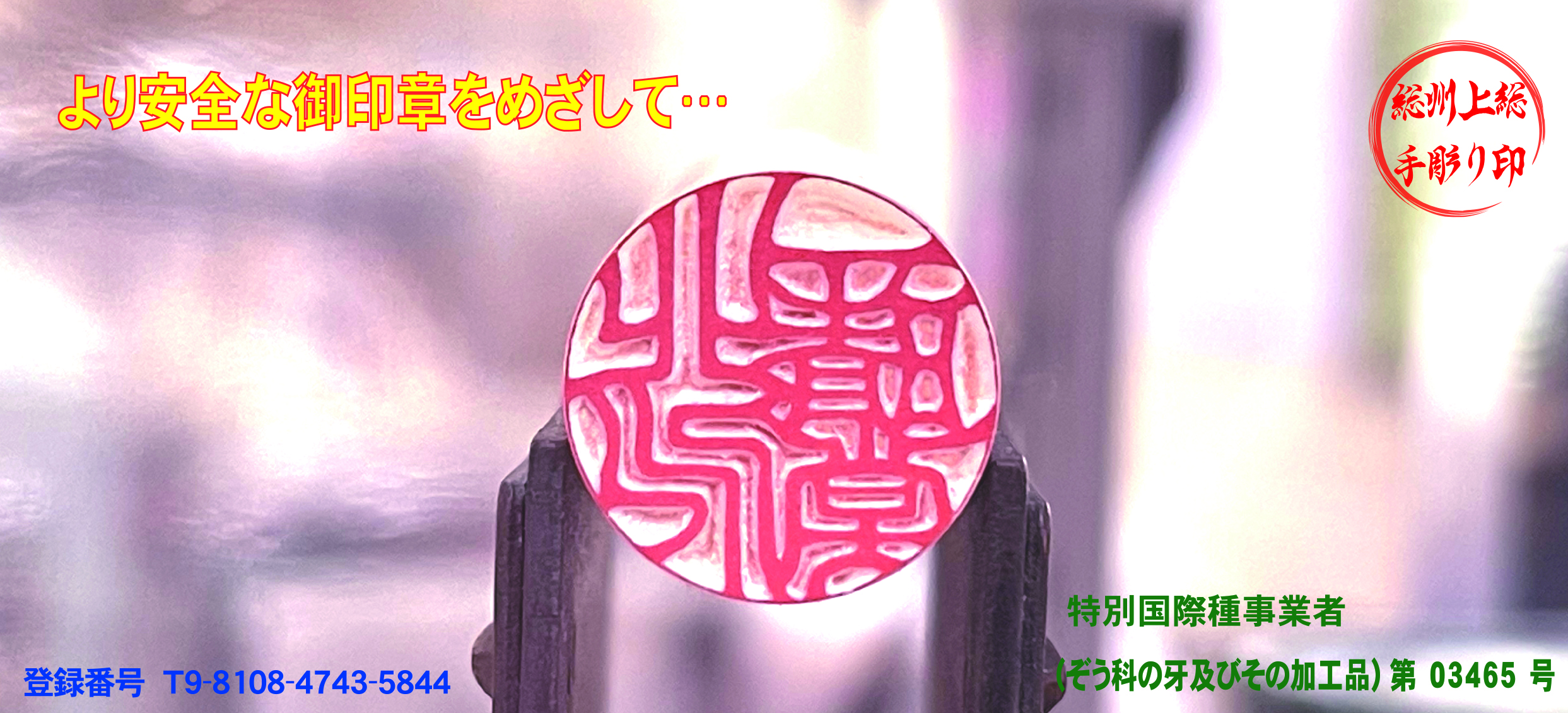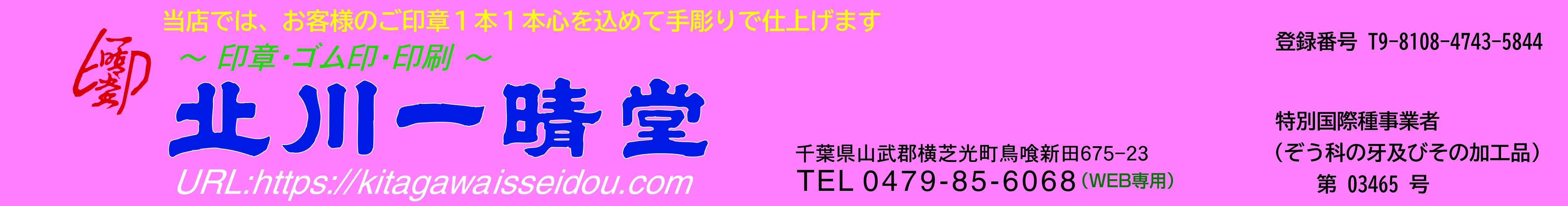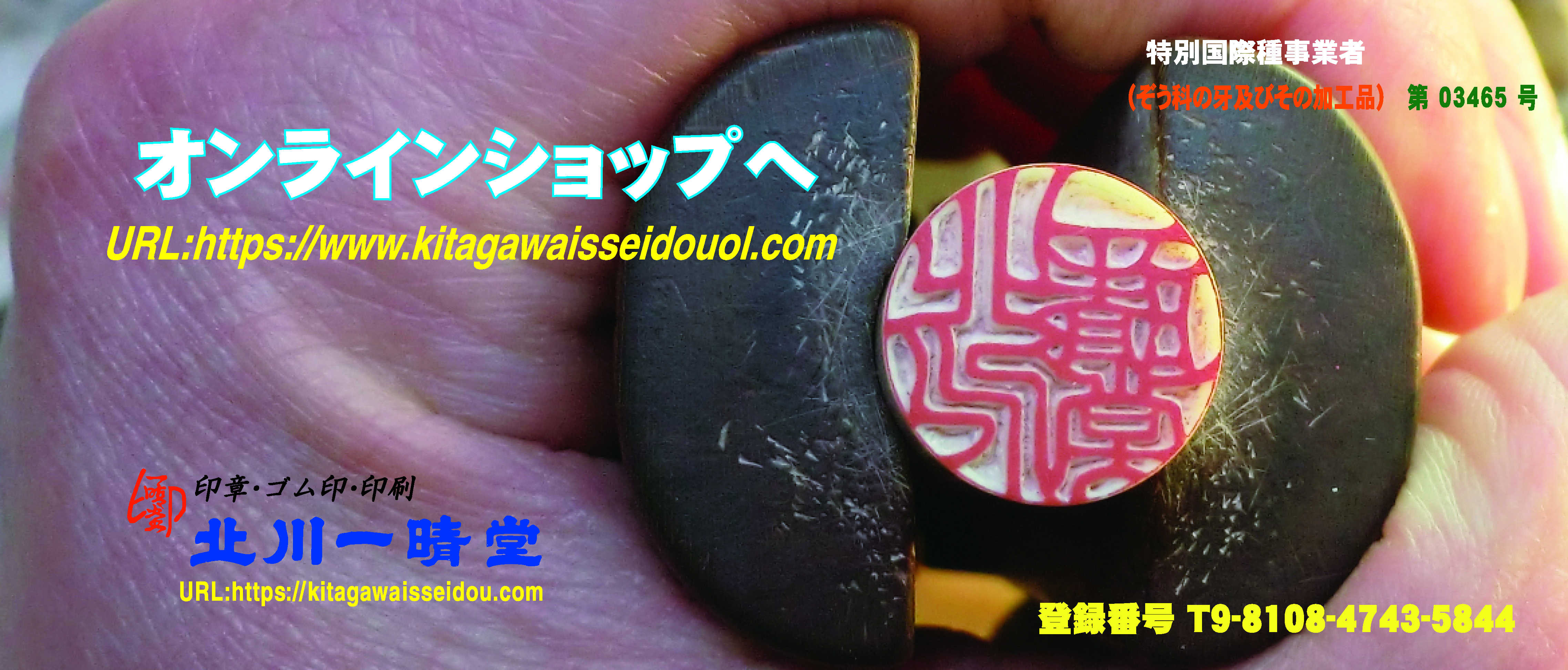 トップページの印章は店頭に展示されております。(本象牙15ミリ丸)