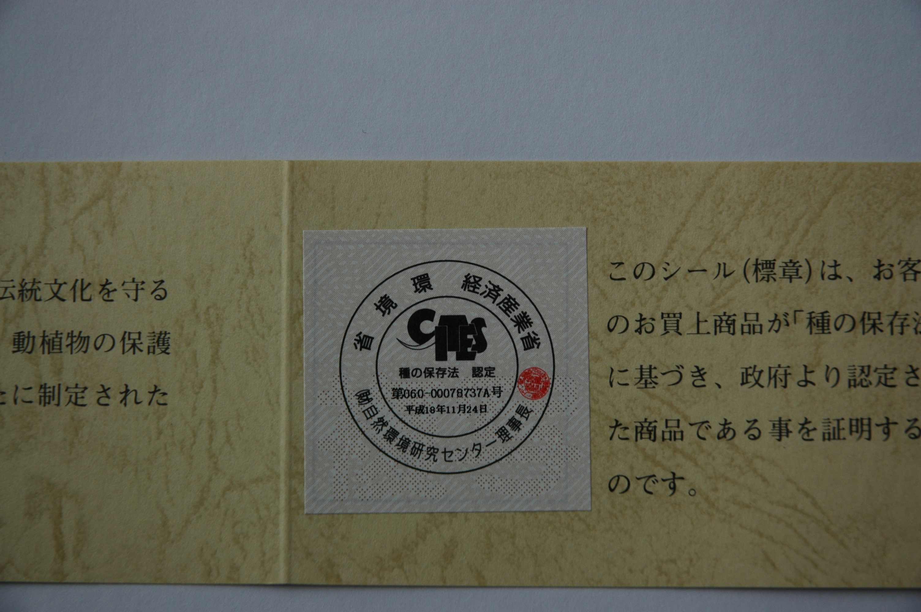 - お買い上げの本象牙のご印章には、政府に認定された商品であることを証明する書類が添付されます。